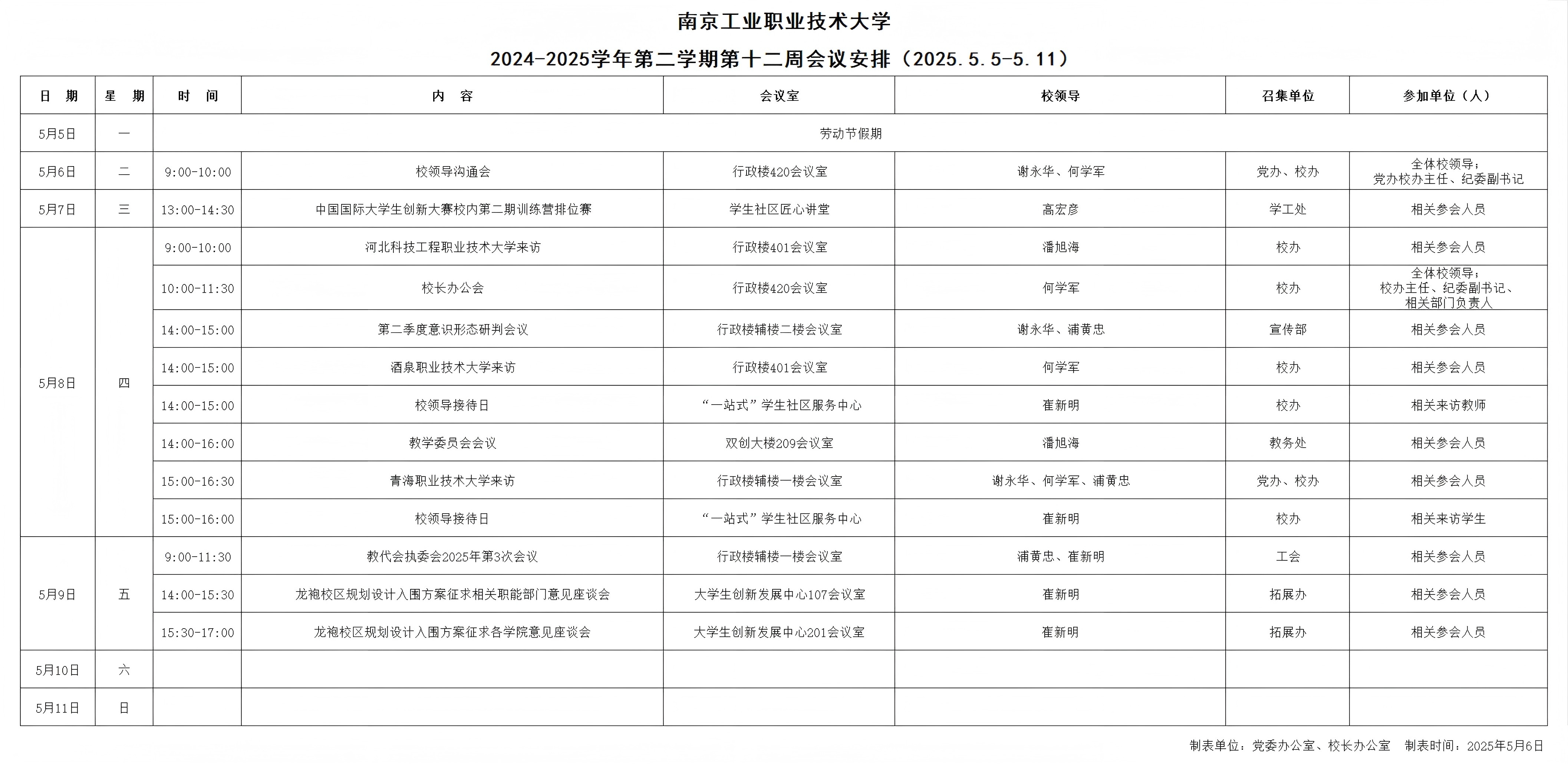 2024-2025学年第二学期第十二周会议安排(2025.5.5-5.11)