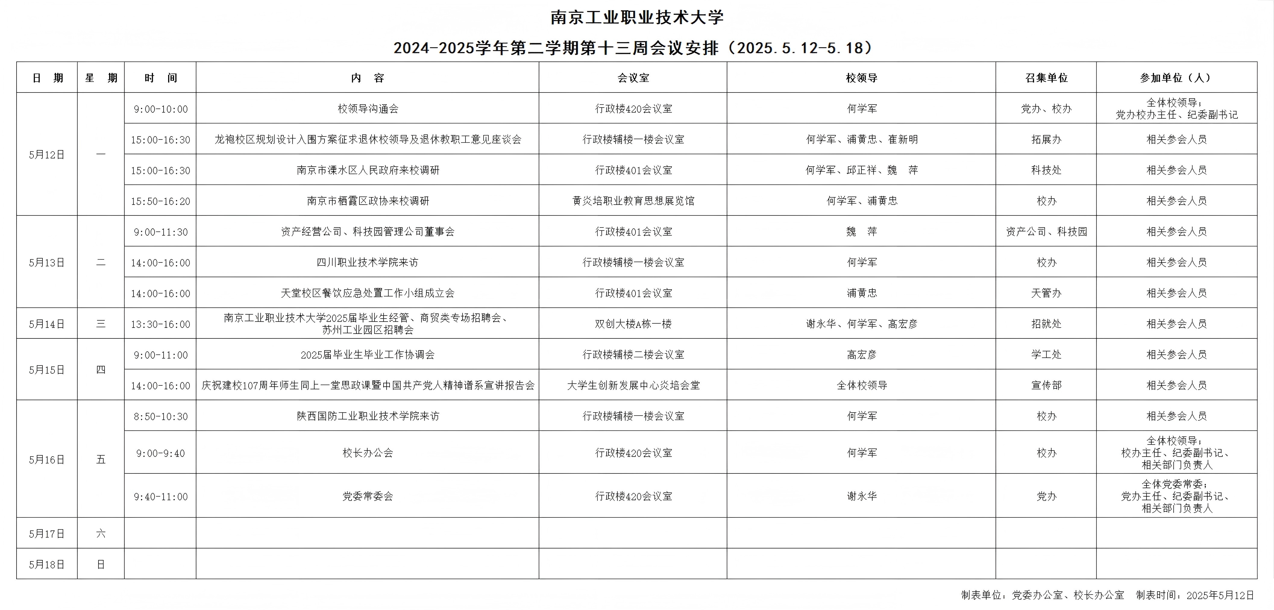 2024-2025学年第二学期第十三周会议安排(2025.5.12-5.18)