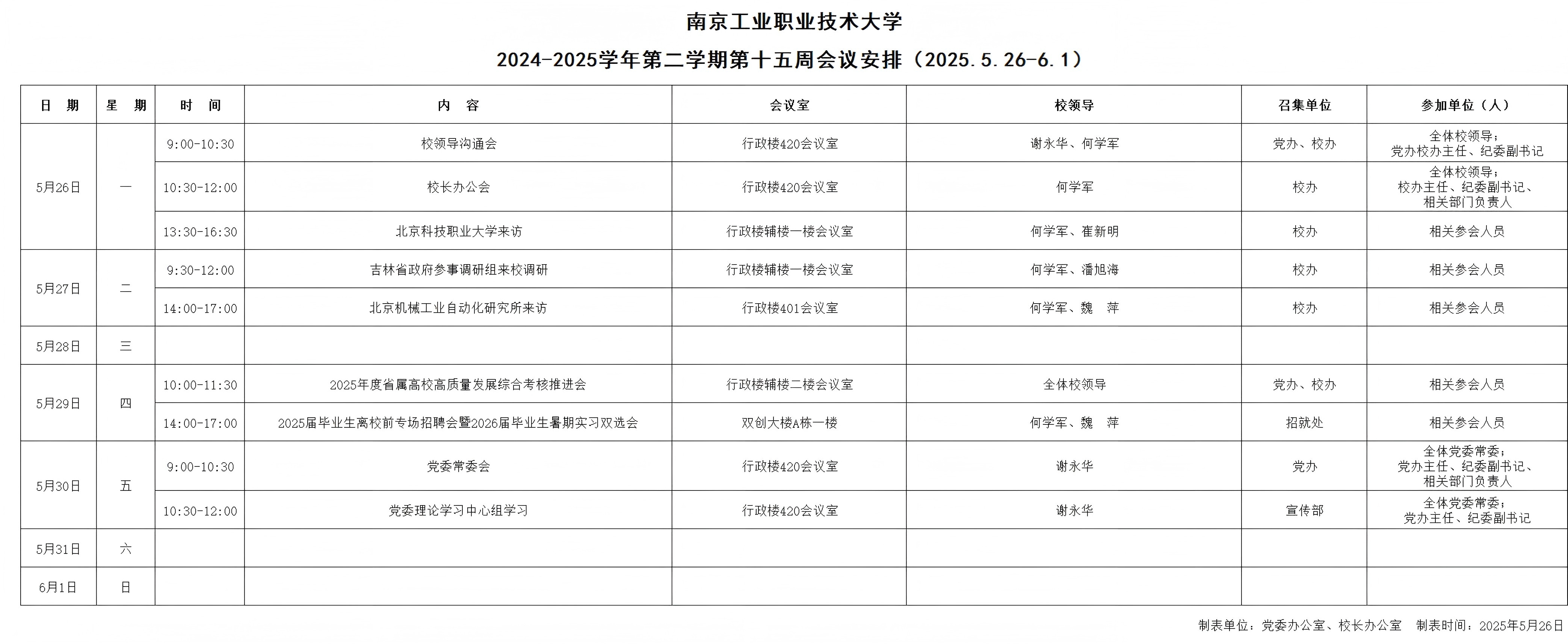 2024-2025学年第二学期第十五周会议安排(2025.5.26-6.1)