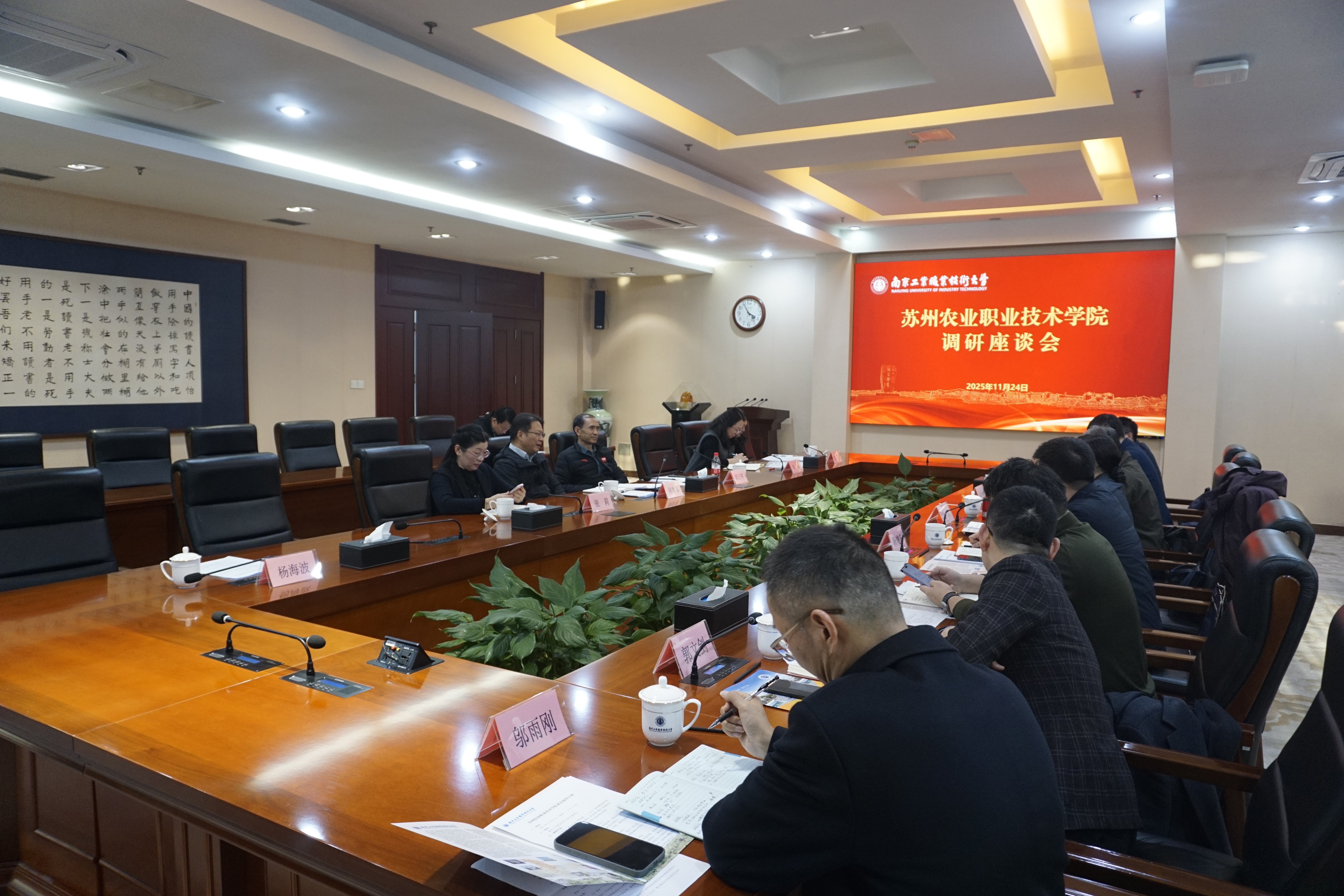 11月24日下午,苏州农业职业技术学院党委副书记、校长赵晶一行8人来校调研交流。我校党委副书记、校长何学军,党委常委、纪委书记邱正祥,党委常委、组织部部长张莉在行政楼辅楼一楼会议室接待了来宾,学校相关部门负责同志参加座谈。座谈会由张莉主持。
