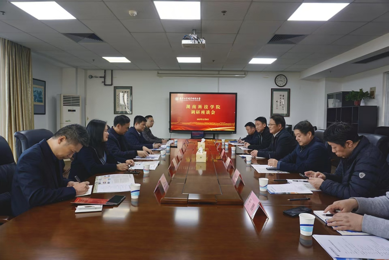 黄创霞对我校的热情接待和经验分享表示衷心感谢,详细介绍了湖南科技学院的历史沿革、学科布局及"十四五"规划收官阶段的重点成果。他表示,南工作为本科职业教育领域的先行者,在办学模式创新、发展规划制定等方面的经验做法对湖南科技学院具有重要借鉴意义,此次调研的核心目的就是学习我校"十五五"规划的顶层设计思路与实践路径,为学院下一阶段高质量发展提供参考。期待双方在人才交流、资源共享、科研协同等方面建立长期稳定的合作关系。