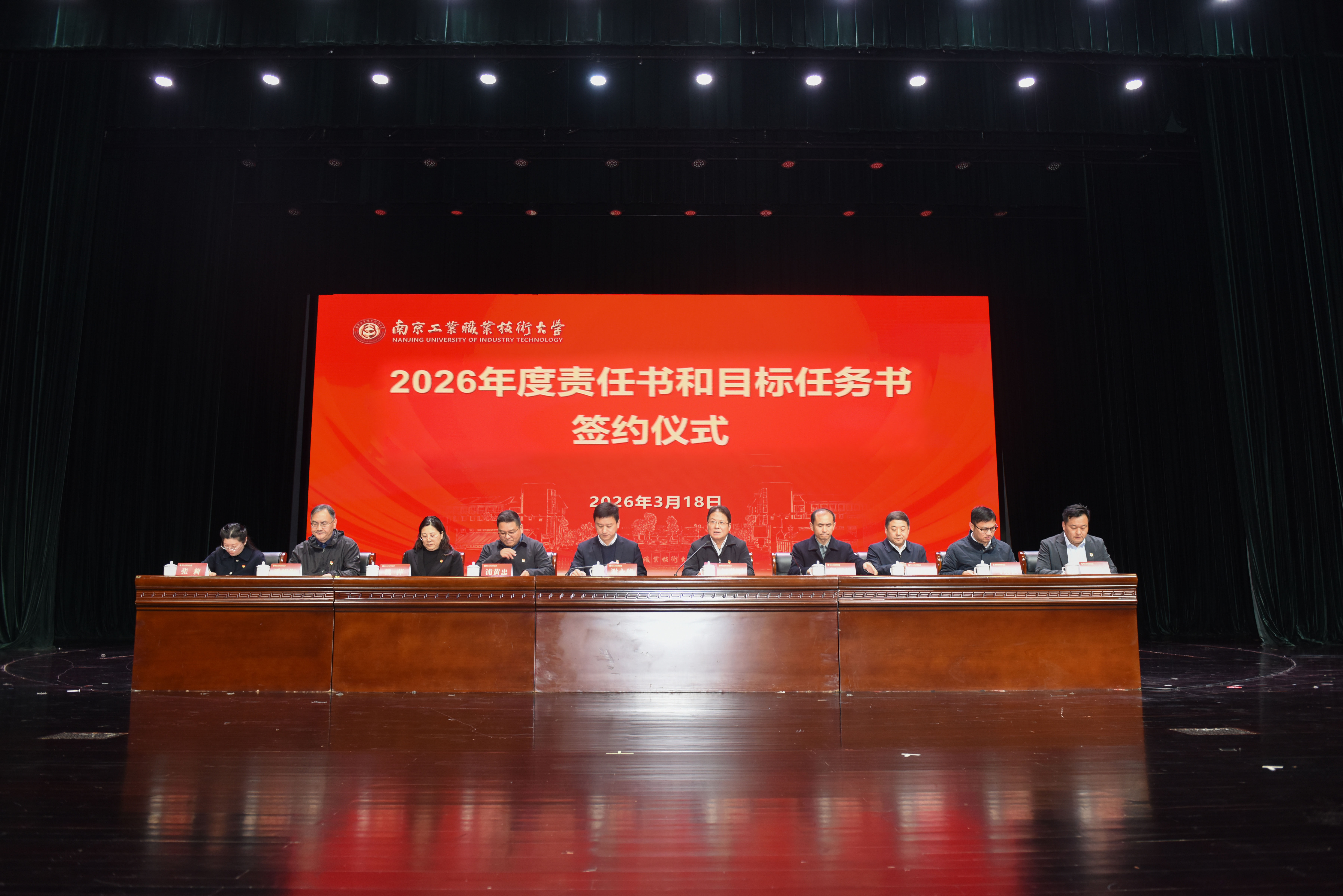 为进一步统一思想、凝聚共识,明确目标、压实责任,紧紧围绕“双高”建设和迎评促建工作,推动2026年目标任务落地落实,用实干实绩全面推进学校“一融双高”,3月18日下午,我校在大学生创新发展中心炎培会堂召开2026年度责任书和目标任务书签订会。全体校党委常委、党委委员、纪委委员、中层干部参加会议,党委书记谢永华出席会议并讲话,会议由党委副书记、校长何学军主持。