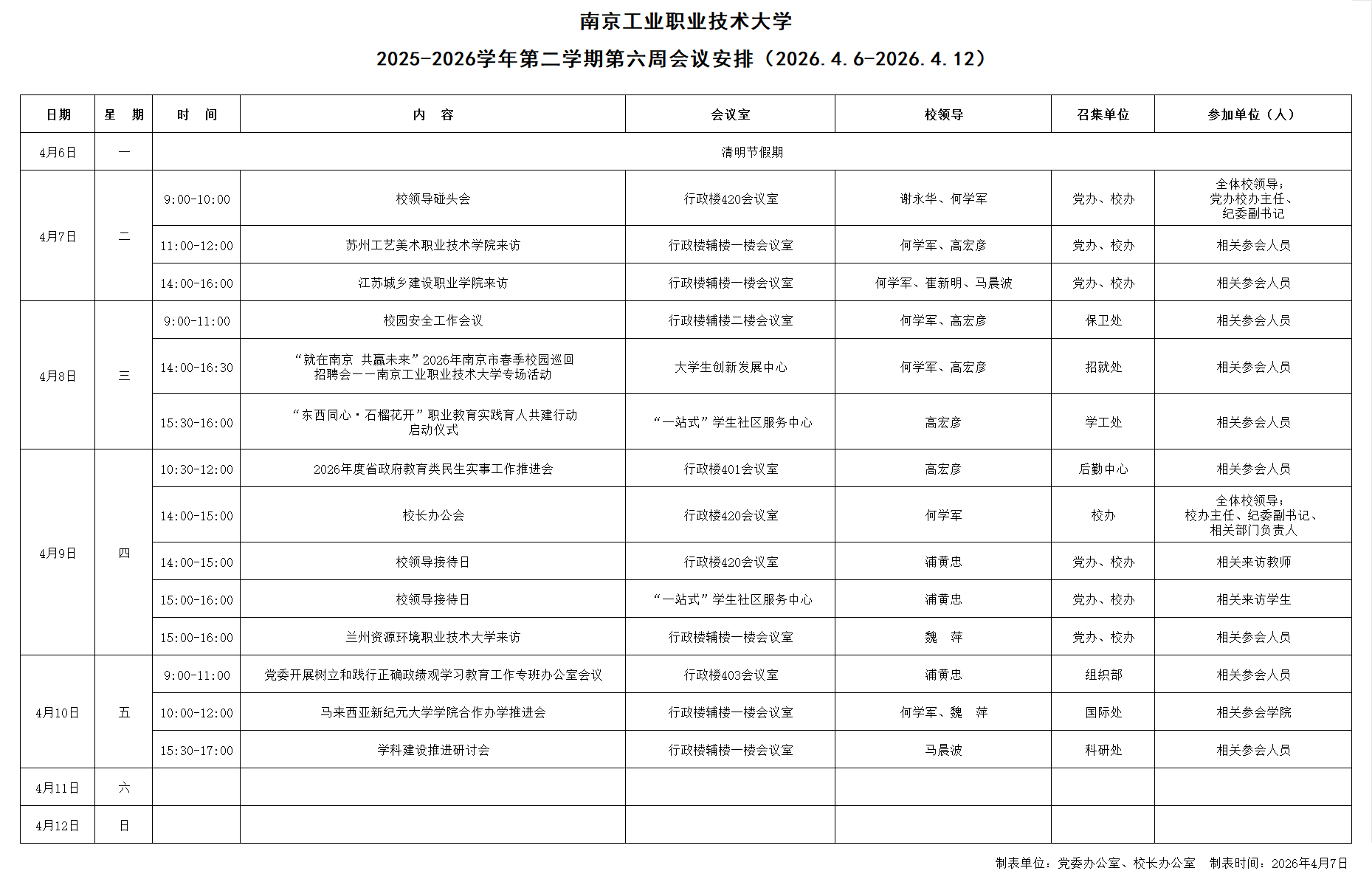 2025-2026学年第二学期第六周会议安排(2026.4.6-2026.4.12)