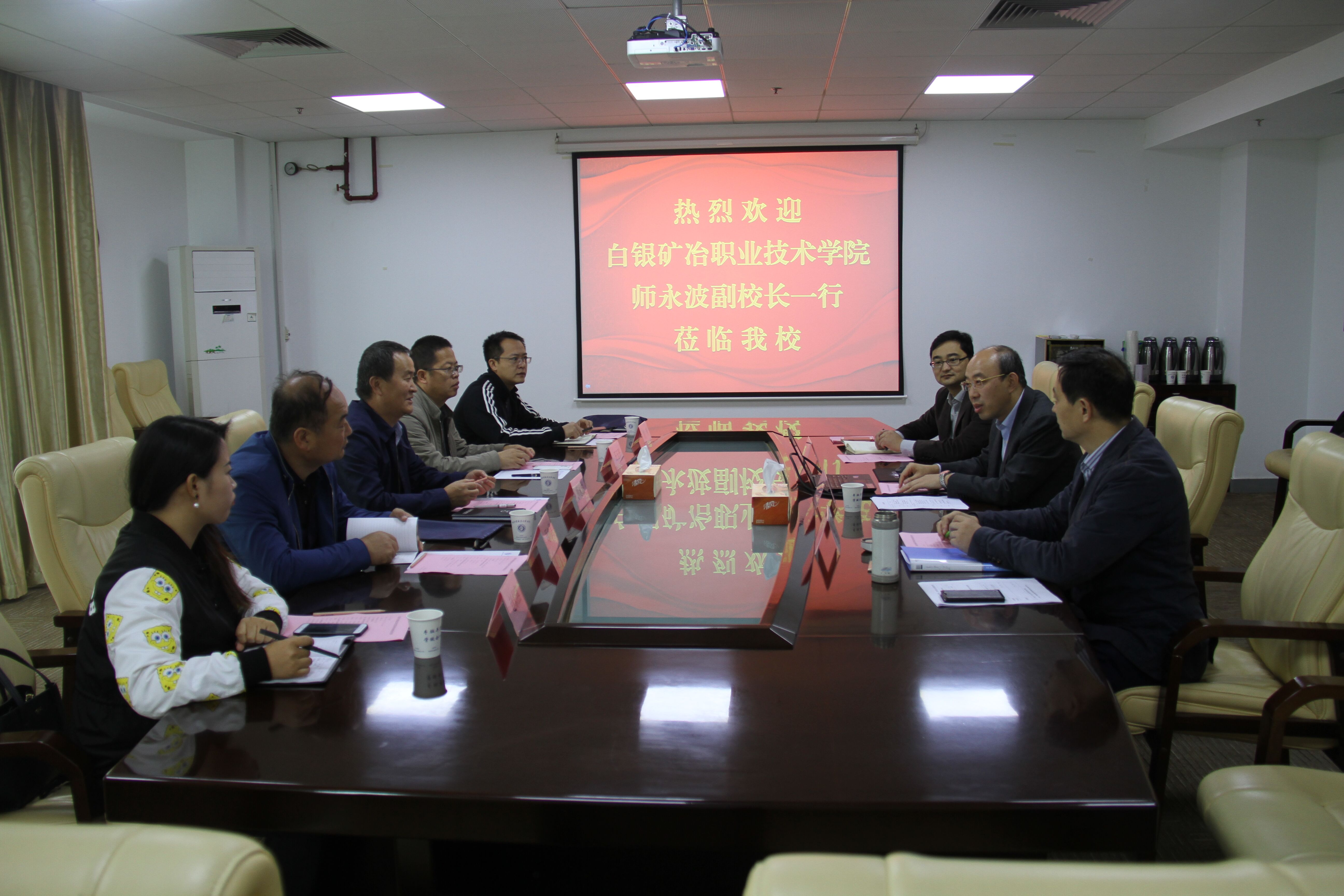 10月17日上午,白银矿冶职业技术学院师永波副校长率领相关部门负责同志来我校进行工作交流。我校霍雄飞副校长以及国际教育学院、党政办公室、发展规划办公室等部门负责同志接待了来宾。