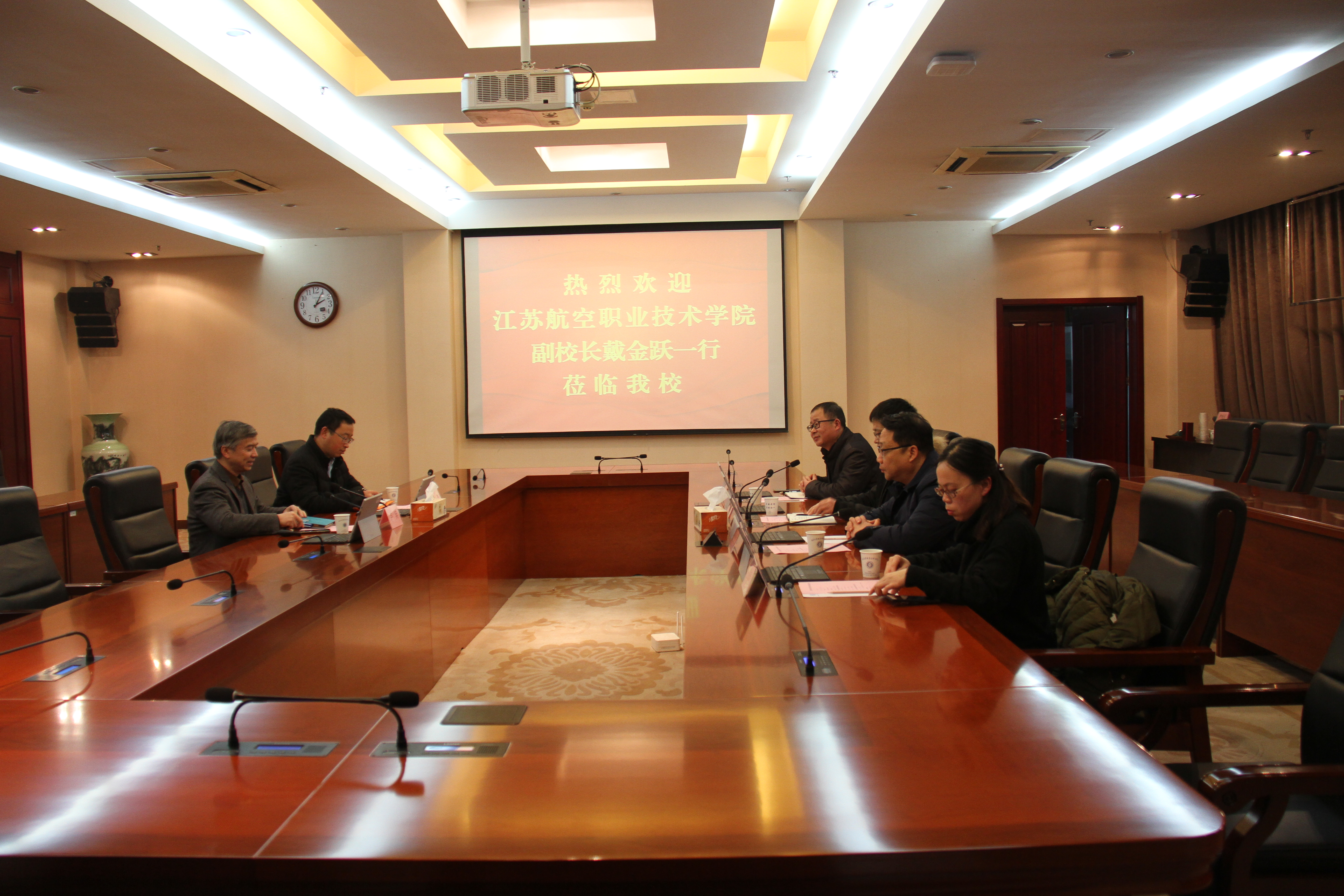 3月1日下午,江苏航空职业技术学院副院长戴金跃同志率领相关同志来我校交流。我校卢兵总督学、航空工程学院相关负责同志接待了来宾。