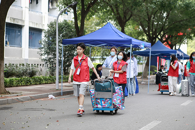 在学校西门、南门、黄炎培广场、学生公寓等校内外迎新点处处可以看到穿红马甲的志愿者们不停地穿梭,热情细心地引导新生完成报到流程,帮助新生搬运行李、介绍校园环境和学校生活经验,他们贴心的服务让2020级新生对南工留下了美好的印象。