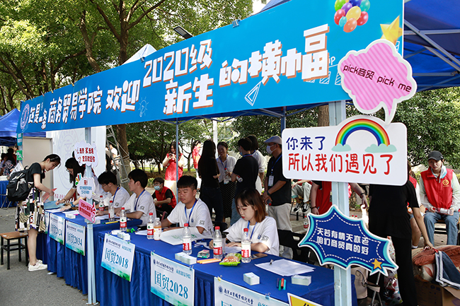 各学院积极响应学校号召,开展了形式多样、创意无限的迎新活动。机械工程学院的以“扬帆机械梦,求索中国强”为主题,迎新现场展示了诸多机器人和3D打印机等机械科技创新作品,现场向新生们诠释专业特色。电气工程学院轻轻“拍了拍”2020新生的肩膀,递上了一张通往梦想的车票,学院全体师生用热情和关怀迎接新生,红马甲“电气青年”志愿者们带给新生们火一样的青春热情。航空工程学院迎新现场的无人机、航模和光立方等展品,让新生充分感受到了航空学院的专业特色,“此间少年 未来可期”的留念墙更是留下了新生来到校园的第一张照片。计算机与软件学院的特色展板上用376名新生的名字精心设计出2020的字样,百度机器人与新生友好交流智能互动,联系卡上标注着辅导员、班主任、保卫处、医务室等联系方式,迎新志愿者们贴心周到的服务让新生们感觉到家的温暖。经济管理学院设计了“梦想时光机”邮筒,新生们在明信片上可以写下未来一年的目标和期许,一年后再发回自己手中,让萌新们对大学生活充满憧憬与希望,同时给每位新生发放定制书签,号召大家为构建文明校园贡献自己的青春力量。商务贸易学院以“青春为马,不负韶华,出彩商贸,伴你前行”为主题开展迎新活动,师生共赴迎新现场传递关怀,小萌新在留念墙上签字记录青春印记,为梦启航!