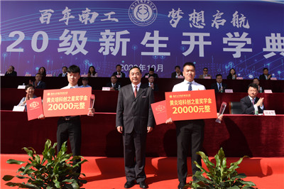 2020级新生代表机械工程学院机电2024班李树龙同学代表新生表达了加入南工的幸福和感动。面对未来的大学生活,他表示要坚定理想信念并为之努力奋斗,在学校新的百年中书写属于2020级新生的青春故事。