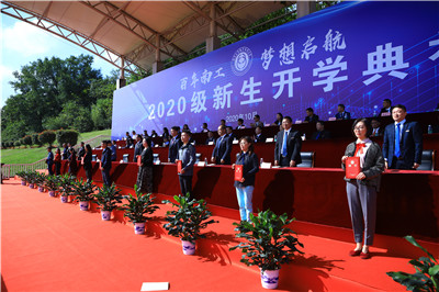 党委副书记、校长谢永华发表了热情洋溢的讲话。他代表全校教职员工向全体2020级新同学表示热烈欢迎和诚挚问候。他介绍了学校的百年办学历史中灿若星辰的杰出校友、独树一帜的办学水平和名师辈出的人才队伍。谢校长指出,新冠疫情下涌现出大批可歌可泣的感人故事让我们更加坚信人生最美的风景在前方,他勉励同学们,天下兴亡,匹夫有责,要做有情怀、有担当、有责任的社会主义事业建设者和接班人;自强不息,厚德载物,要用积极态度面对未来的挑战和困难;知行合一,躬行实践,在学习和实践的循环往复中得到升华;革故鼎新,与时俱进,在学校浓厚的创新创业氛围中发扬创新禀赋、激发创新内蕴。