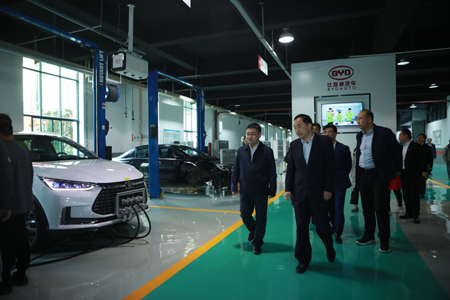 随后调研组深入教学实训一线,参观了江苏省“匠人匠心”青年技能人才培训基地,实地走访产教融合先进制造实训基地,考察了智能制造综合实训中心、先进数控技术实训中心、比亚迪新能源汽车实训中心、航空机电综合实训中心和城轨机电综合实训中心。调研组对我校在产教融合方面所做出的努力表示肯定,并提出,校企合作是职业教育培养符合企业需求、适应市场发展变化的应用技术型人才的不变根本。