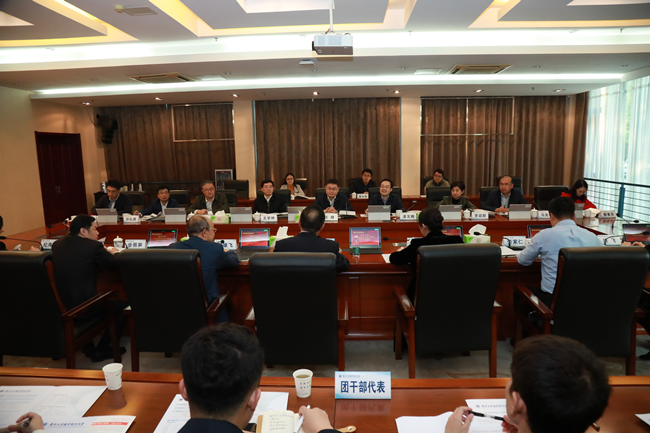 考察结束后,调研组一行与我校领导及相关职能部门负责人、团委班子成员、团干部代表集体座谈。霍雄飞主持会议。