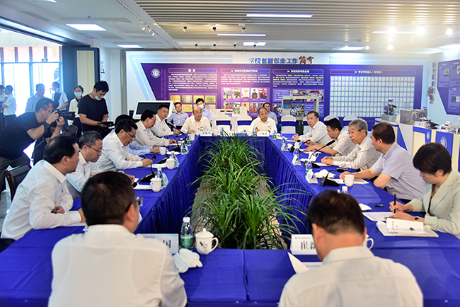 考察结束后,陈宝生一行与我校领导班子座谈。座谈会上,陈宝生回顾了中国近代职业教育产生的渊源和职业教育服务“实业救国”的爱国主义传统,突出了黄炎培、张謇等职教先贤的历史贡献,并充分肯定了学校始终在职业教育阵地坚守和探索的努力与成效。陈宝生追溯了“职业技术”一词的历史源流,他强调,“职业”是定位,“技术”是定性,职业技术大学的学科专业和人才培养要始终承载技术的传承、开发和创新。陈宝生要求学校进一步加强对职业技术教育的研究,做到正本清源。他勉励学校把“光荣留给过去,奋斗留给现在,希望留给未来”,办出世界一流水平的中国特色职业教育。