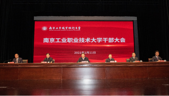 2021年1月11日,南京工业职业技术大学干部大会在学校大学生创新发展中心召开。会议宣布省委关于组建中共南京工业职业技术大学委员会和领导班子任职的决定。省政府副省长马欣,省政府副秘书长徐光辉,省委组织部部务委员、干部一处处长黄楚中,省委教育工委副书记、省教育厅党组成员徐子敏,省委组织部、省委教育工委有关处室负责同志出席大会。学校领导班子成员、部分老领导、全体中层干部、教师代表、区级以上“两代表一委员”、民主党派代表参加会议。会议由黄楚中部委主持。