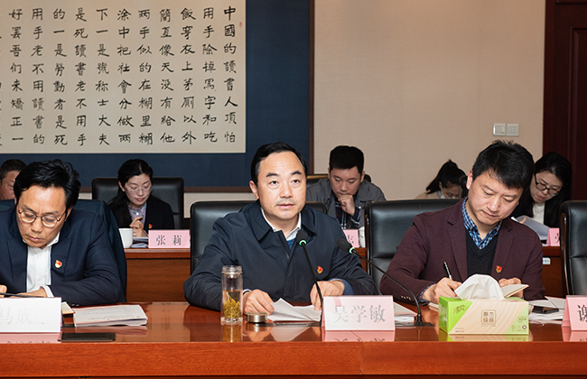 校党委书记吴学敏汇报学校党史学习教育开展情况。党史学习教育开展以来,校党委深入学习领会习近平总书记在党史学习教育动员大会上的重要讲话精神,扎实推进党史学习教育,近期部署推进了多项重点工作:召开动员大会,成立组织机构;制定工作方案,明确目标任务;党委率先垂范,放样子做表率;开展专题宣讲,营造学习氛围;结合部门实际,形成工作特色。下一阶段,学校党委将在前期学习的基础上,进一步围绕学党史、悟思想、办实事、开新局的要求,把学习教育引向深入,做到规定动作不走样,自选动作有特色,学习教育见实效。