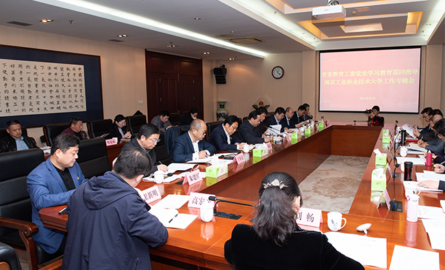 4月16日上午,省委教育工委派出第一指导组来南京工业职业技术大学开展工作指导。第一指导组组长、南京艺术学院原党委书记管向群,副组长、江苏省教育厅二级巡视员赵晓群等指导组全体成员到会指导。全体在校校领导、党委常委、党史学习教育领导小组及办公室成员参加会议。会议由校党委副书记王伟主持。