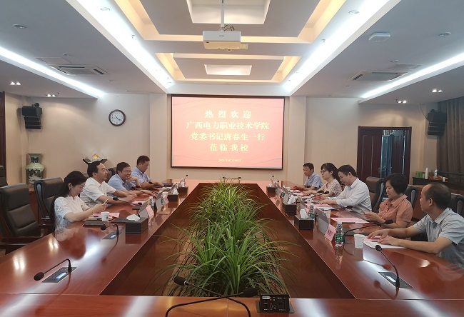 7月9日上午,广西电力职业技术学院党委书记唐春生一行来我校考察调研。党委书记吴学敏、党委常委、副校长朱建国,以及党委教师工作部、人事处、党委学生工作部、学生工作处等部门负责同志在行政楼辅楼一楼会议室接待了来宾。
