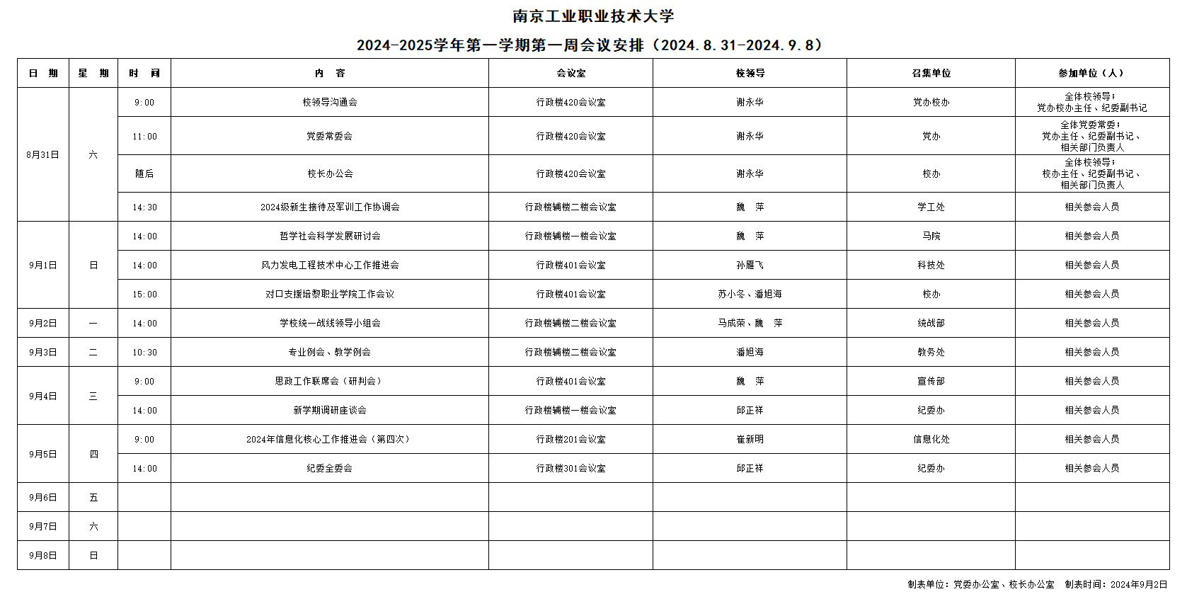 2024-2025学年第一学期第一周会议安排(2024.8.31-2024.9.8)