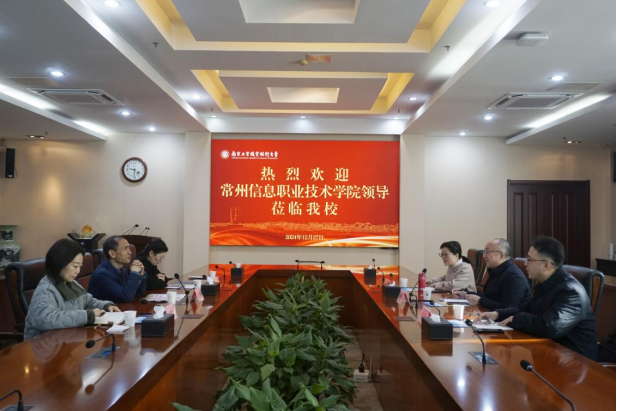 12月27日上午,常州信息职业技术学院党委委员、纪委书记、省纪委监委派驻常州信息职业技术学院纪检监察专员江庆华一行3人来校调研。省纪委监委派驻南京工业职业技术大学纪检监察组组长、校党委常委、纪委书记、二级高级监察官邱正祥,以及学校相关部门负责人在行政楼辅楼一楼会议室接待了来宾。